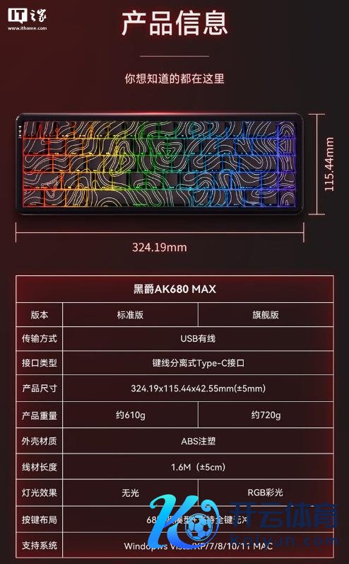 IT之家附黑爵 AK680 MAX 磁轴键盘亮点、家具信息如下: