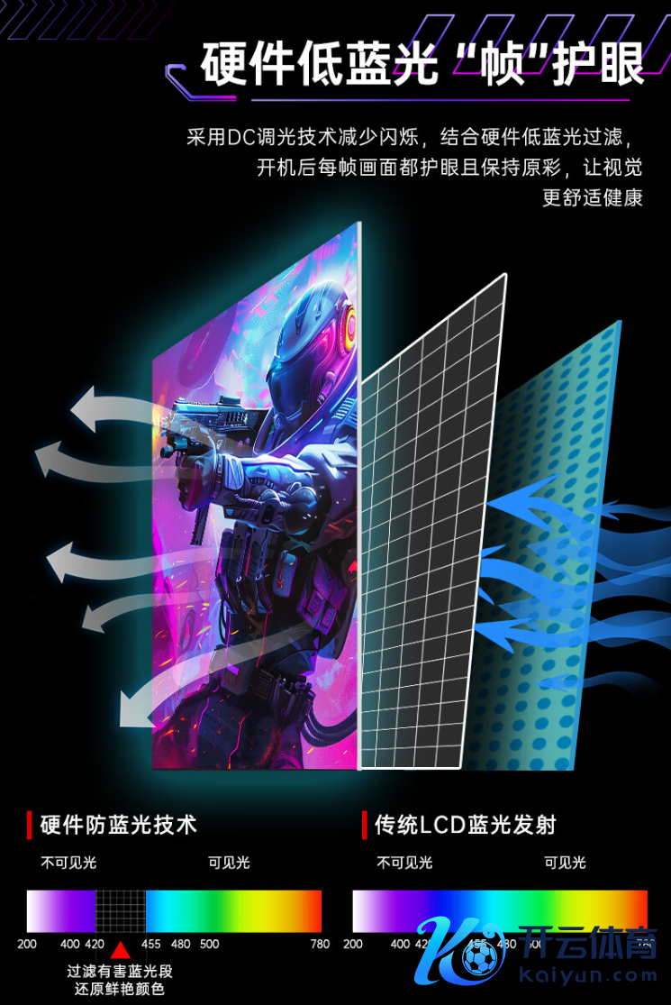 该款露出器采选 DC 调光技巧减少耀眼、赞助 10.7 亿色露出和动态 OD 技巧(三挡可调),官方称开开动态 OD 后露出器帧率可自动同步游戏及时帧率,可减少残影、摈斥拖影。