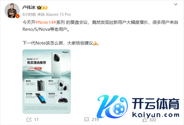 他示意,开Redmi Note 14系列的复盘会议时,居然发现拉新用户大幅度增长,好多用户来自Reno/S/Nova等老用户。