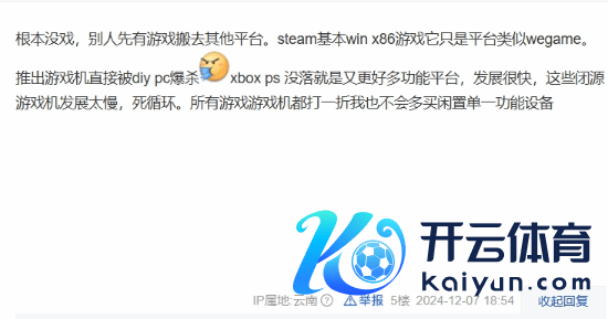 另外,也有玩家对V社推出主机的远景暗意悲不雅:“根蒂没戏,别东谈主先有游戏搬去其他平台。Steam基本Win x86游戏它仅仅平台,访佛WeGame。推出游戏机径直被DIY PC爆杀,Xbox PS没落即是又更多功能平台,发展很快,这些闭源游戏机发展太慢,死轮回。”