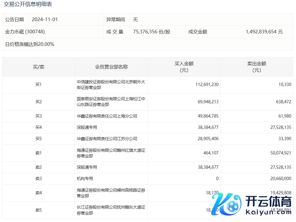 金力永磁当天涨停 一机构专用席位净卖出2066万元金力永磁当天涨停 一机构专用席位净卖出2066万元