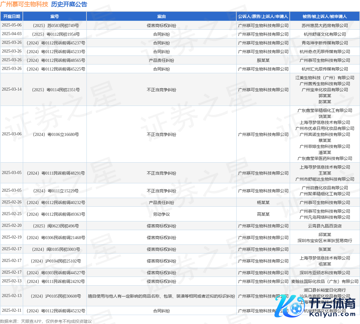 本站音问开云体育,左证天眼查APP涌现,近日公布了一则广州慕可生物科技有限公司动作原告/上诉东说念主的开庭公告,缜密实践如下: