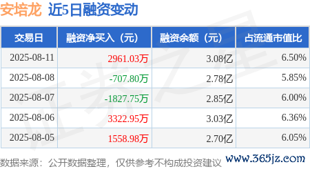 本站音讯开yun体育网,8月11日,安培龙(301413)融资买入7970.44万元,融资偿还5009.41万元,融资净买入2961.03万元,融资余额3.08亿元,近20个往复日中有11个往复日出现融资净买入。