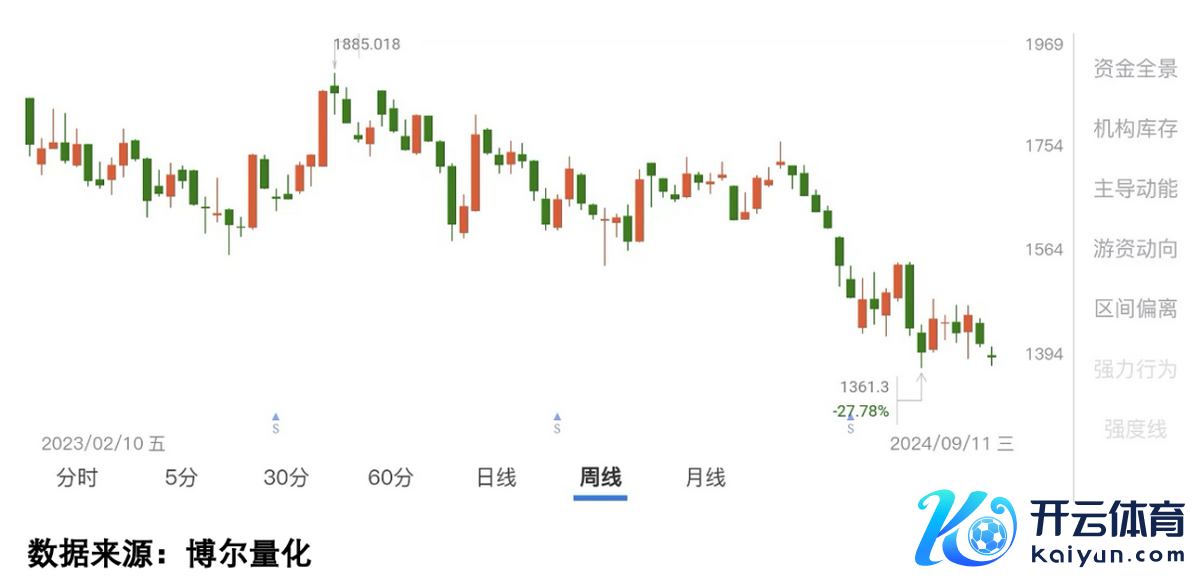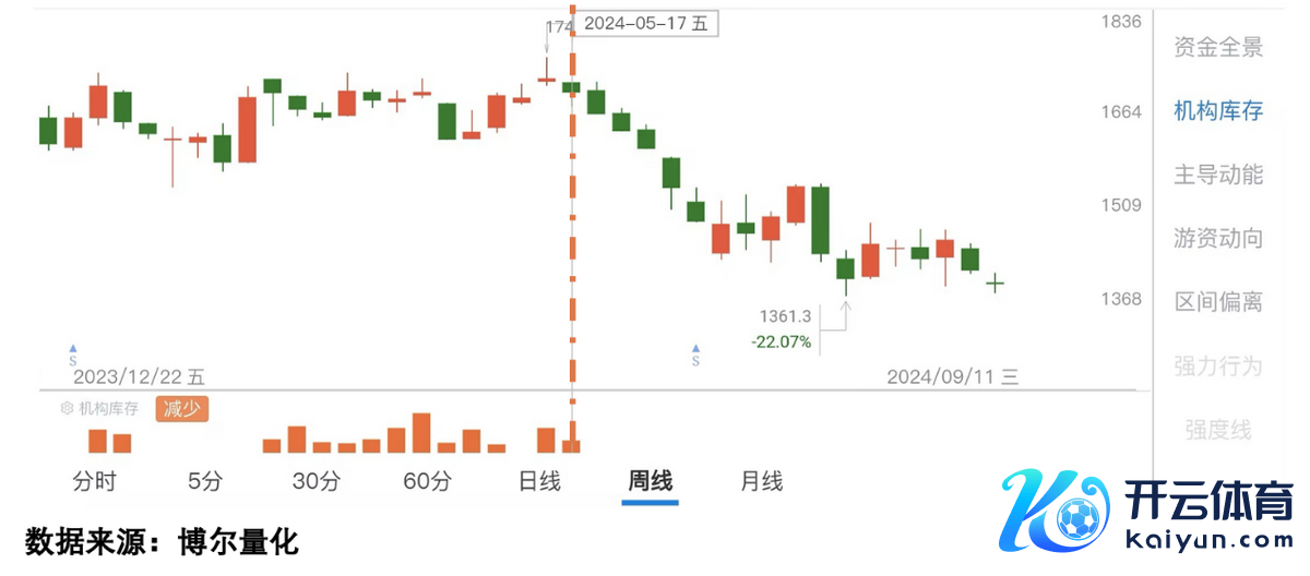 从周线数据不错看出,2024年5月后,茅台的机构库存数据就消释了。这意味着机构不再积极参与交游,股价当然撑不住。