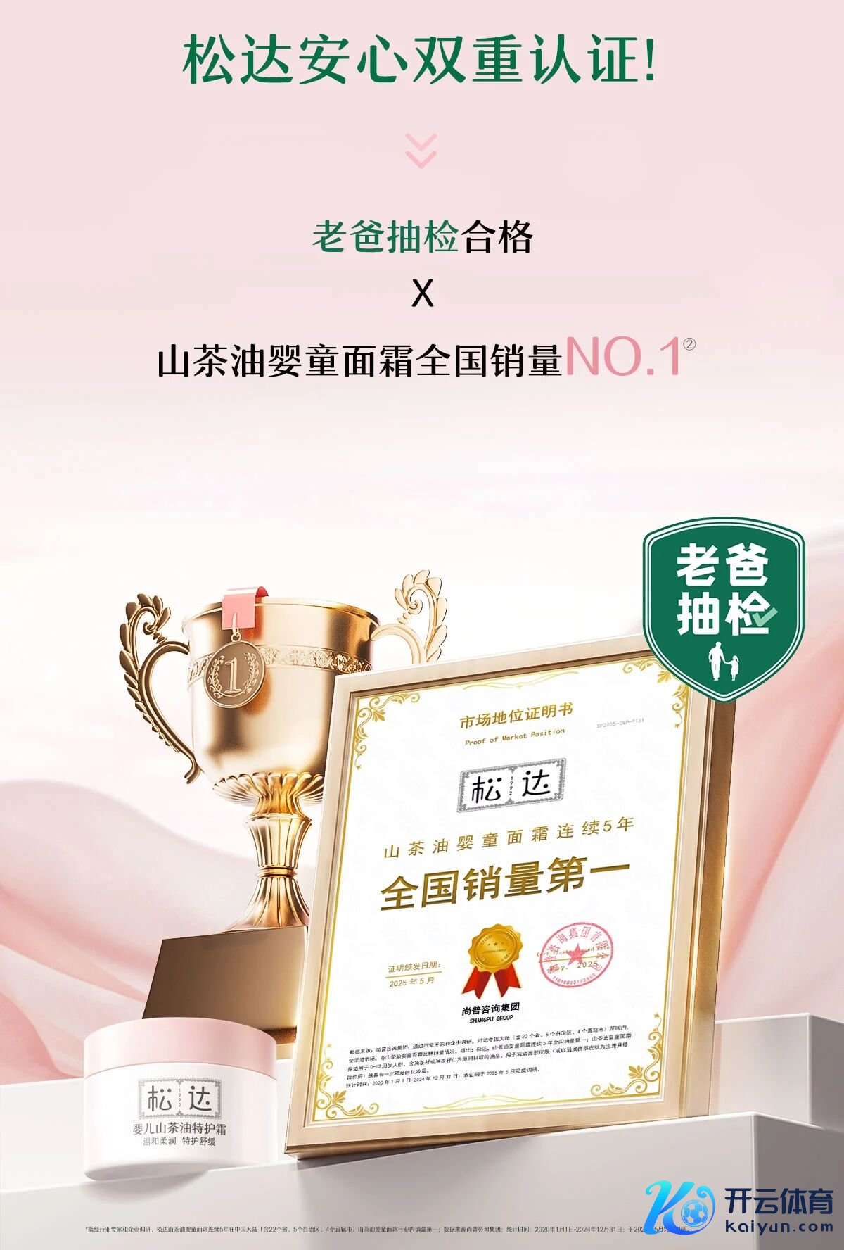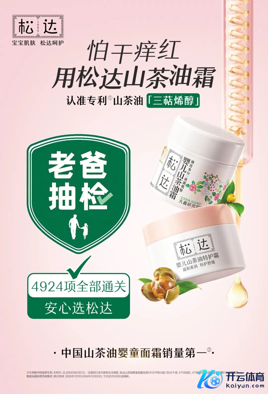 跟着监管与临床实证的不休完善,国货婴童护肤品牌在自然要素与安全边界不绝随意,获取了越来越多中国父母的信任。近期,松达中枢居品斩获双重巨擘认证:其中,松达婴儿山茶油霜通过了“老爸抽检”4924项严格检测,在风险物资、激素等方面均为“零检出”;同期,经三甲病院婴童临床实证阐述,松达婴儿山茶油特护霜安全性和灵验性俱佳,100名受试患儿在28天不雅察期内,均未出现任何皮肤刺激或过敏反馈。