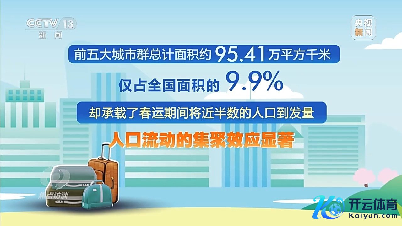 春运40天期间,城市群成为世界东谈主口流动热门区域。长三角、京津冀、成渝、珠三角和长江中游城市群位居世界东谈主口流动前五大区域,日均到发量均跨越3000万东谈主次,前五大城市群意料面积约95.41万泛泛千米,仅占世界面积的9.9%,却承载了春运期间快要半数的东谈主口到发量,东谈主口流动的会聚效应显赫。