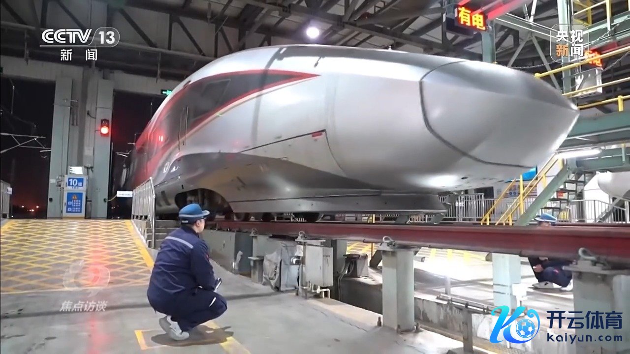 夜深时候,从广州南站开来的G424次列车冉冉插足测验库。这是一列16节编组的修起号智能动车组,头一天它从郑州东站起程赶赴广州南站,又从广州南站到北京西站,稍作停留后,第二天又开回广州南站,终末复返郑州东站。颠倒于两天的时期,就在泰半个中国跑了一个来去。